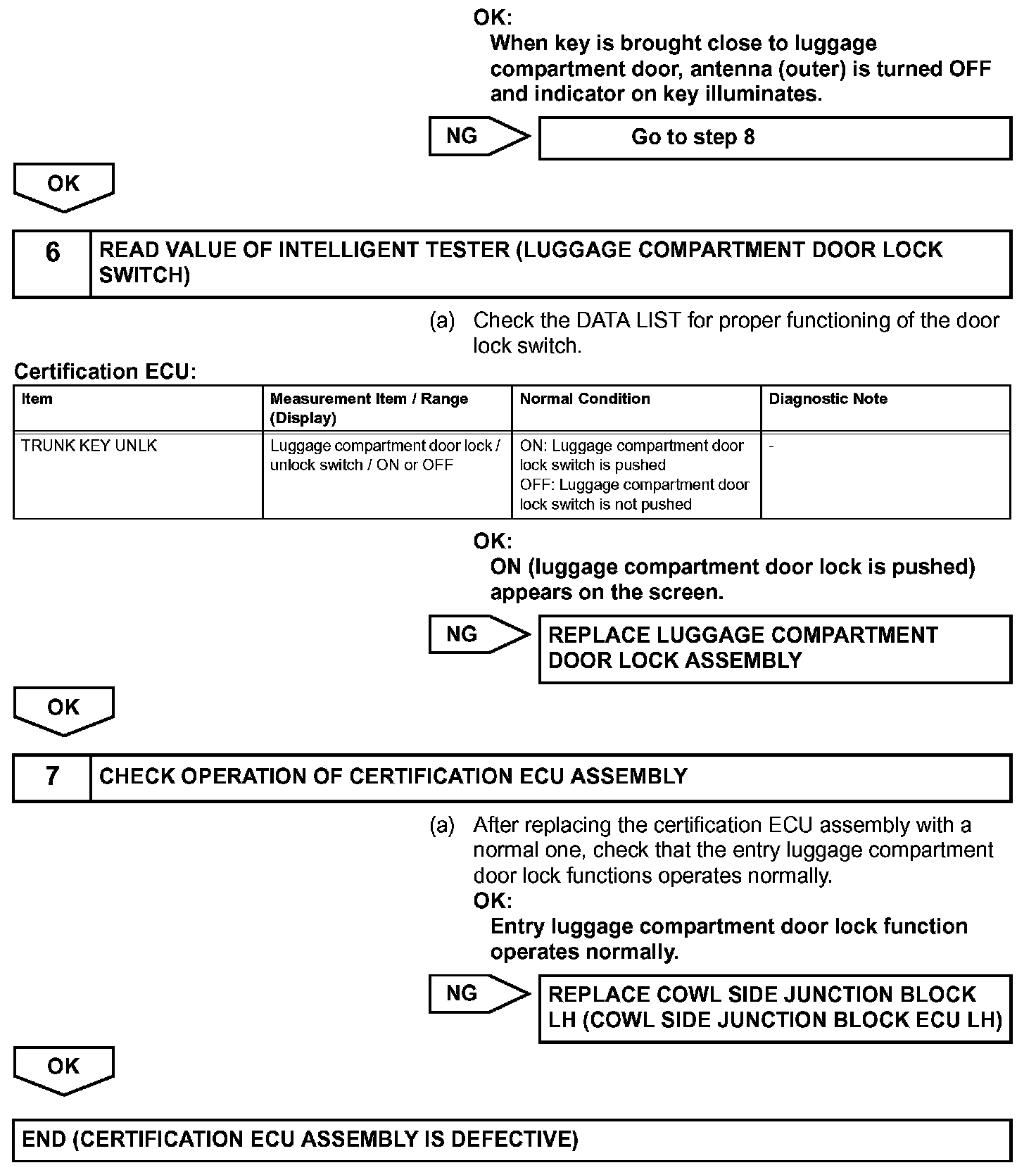 Luggage Compartment Door Entry Unlock Function does not Operate when Key is Outside Luggage CompartmentDESCRIPTION