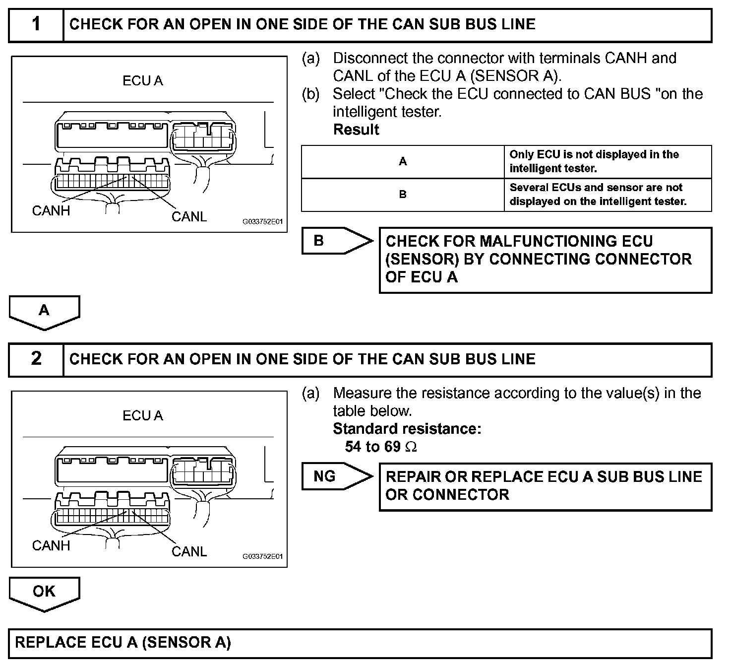 - The given is the troubleshooting procedures of an open in either CANH or CANL of the ECU A (SENSOR A).
