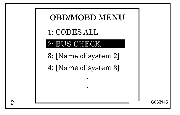 a. Select "BUS CHECK" from the "OBD/MOBD MENU" screen.