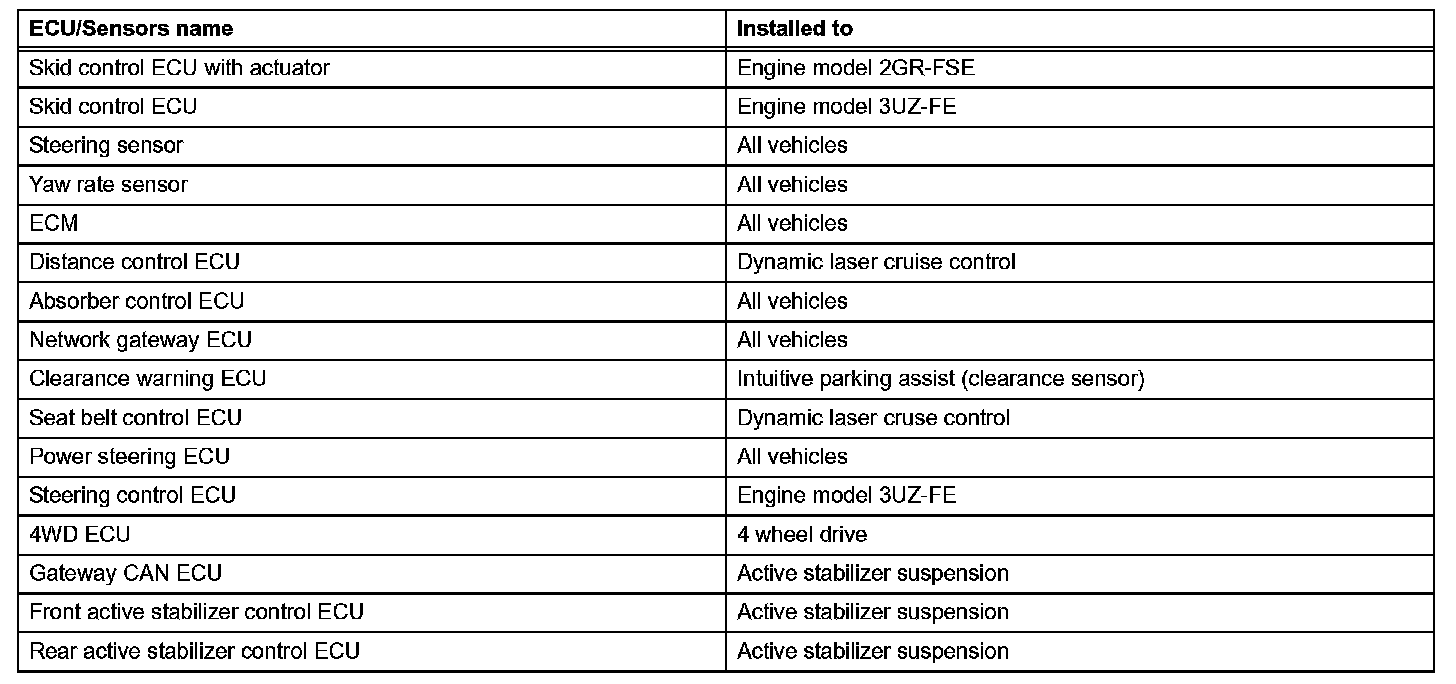 a. Systems (ECUs, sensors) that use CAN communication vary depending on the vehicle's optional settings. Check which systems (ECUs, sensors) are installed on the vehicle.
