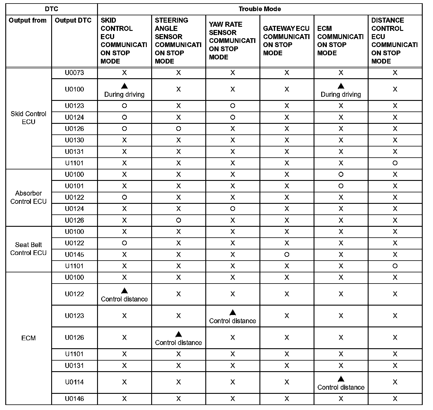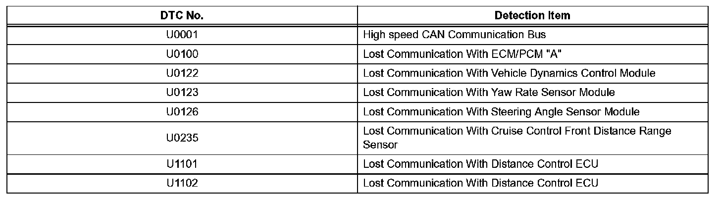 - DISTANCE CONTROL ECU COMMUNICATION STOP MODE: