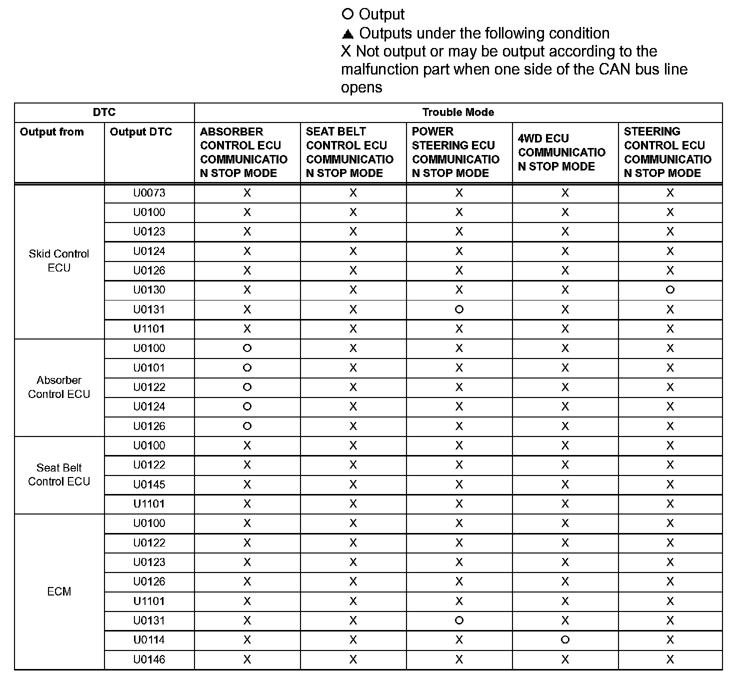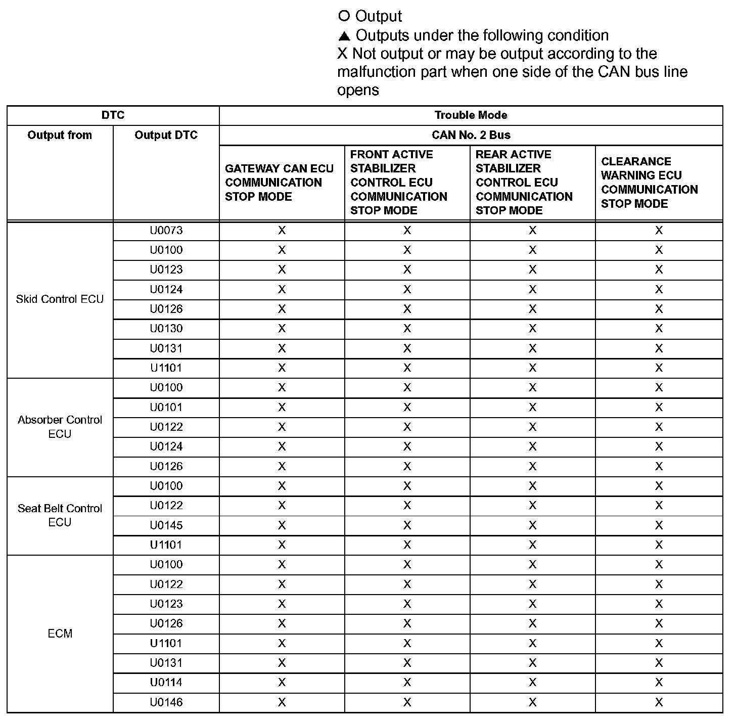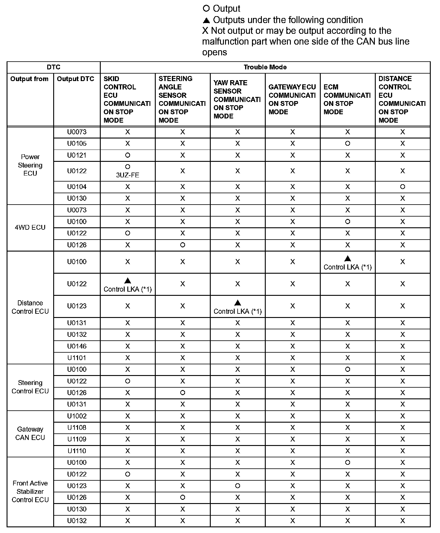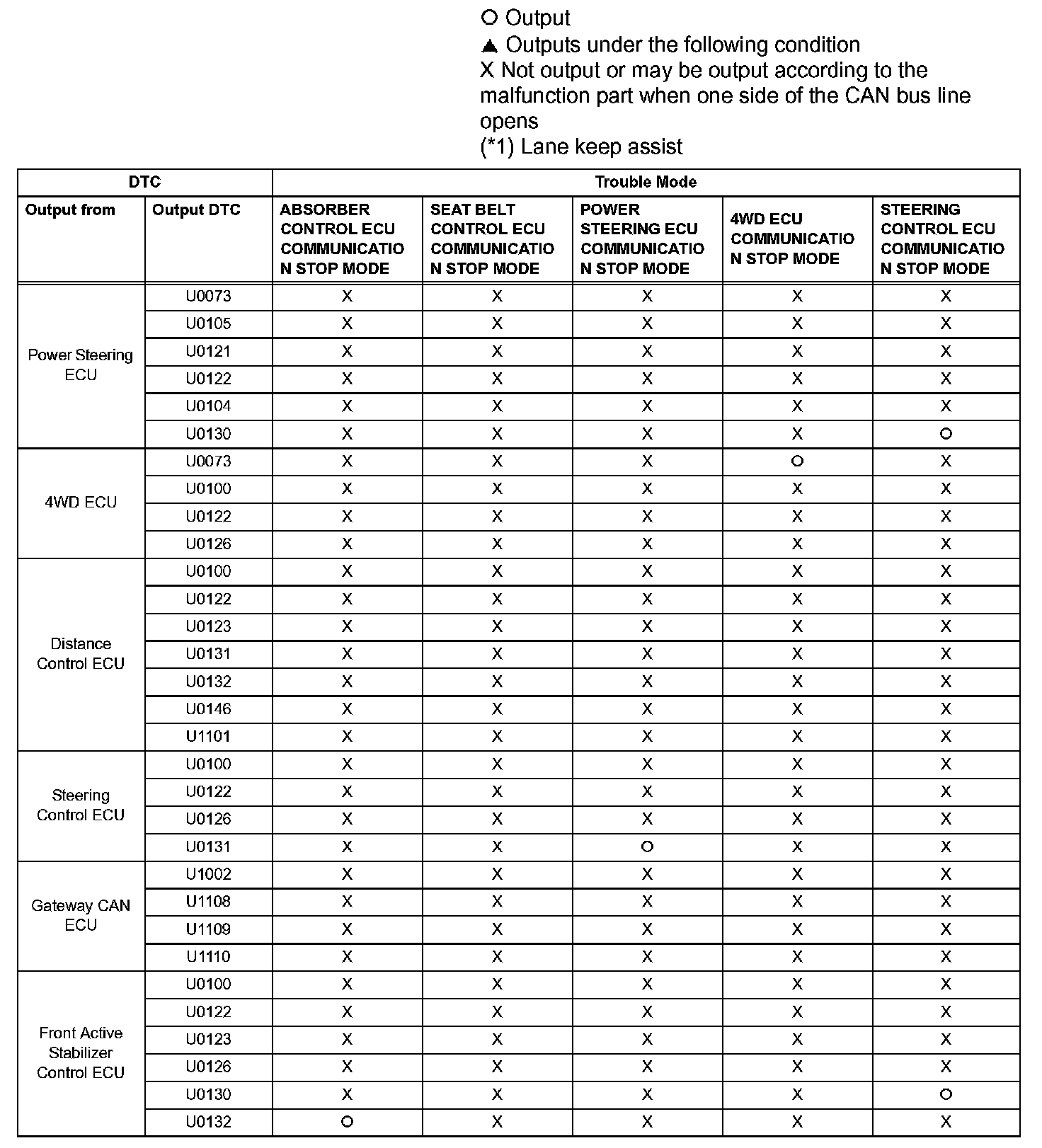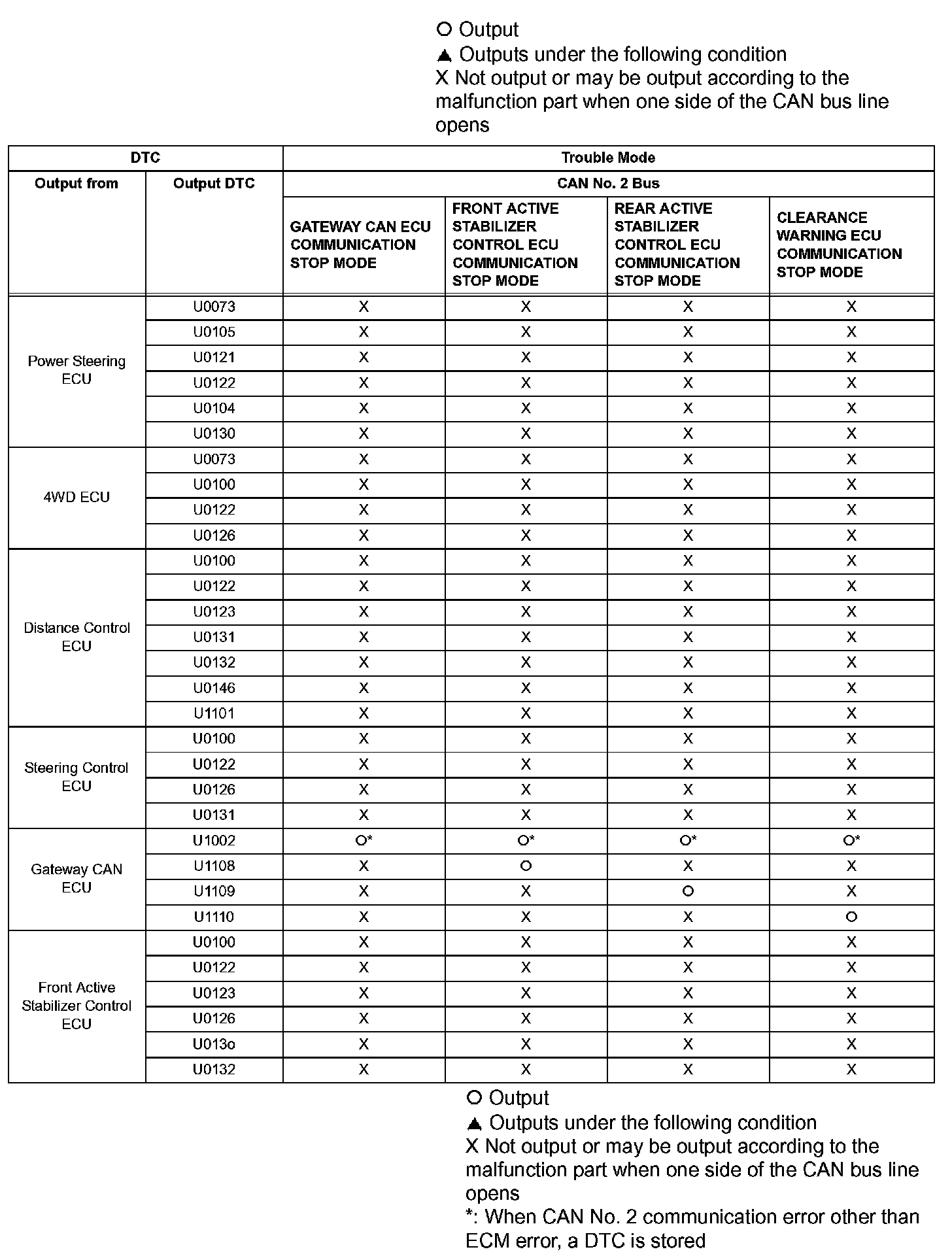 - *1: The ECM is malfunctioning if U0001 is output alone. Replace the ECM.