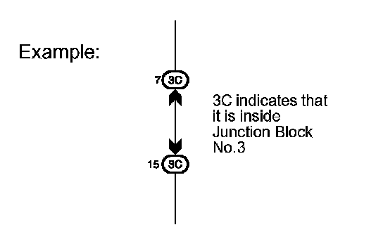 Example: Connector "3C" connects the Instrument Panel Wire and J/B No.3. It is described and is installed on the instrument panel left side.