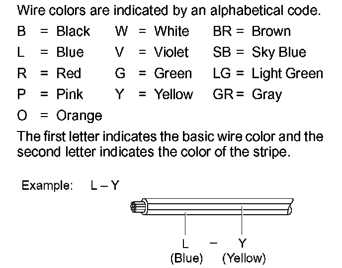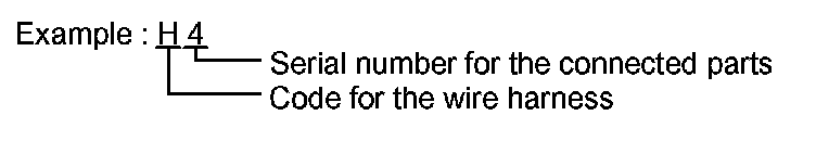 - The first character of the code indicates the alphabetical code allocated to the wire harness, and the second character indicates the serial number of the parts connected to the wire harness.