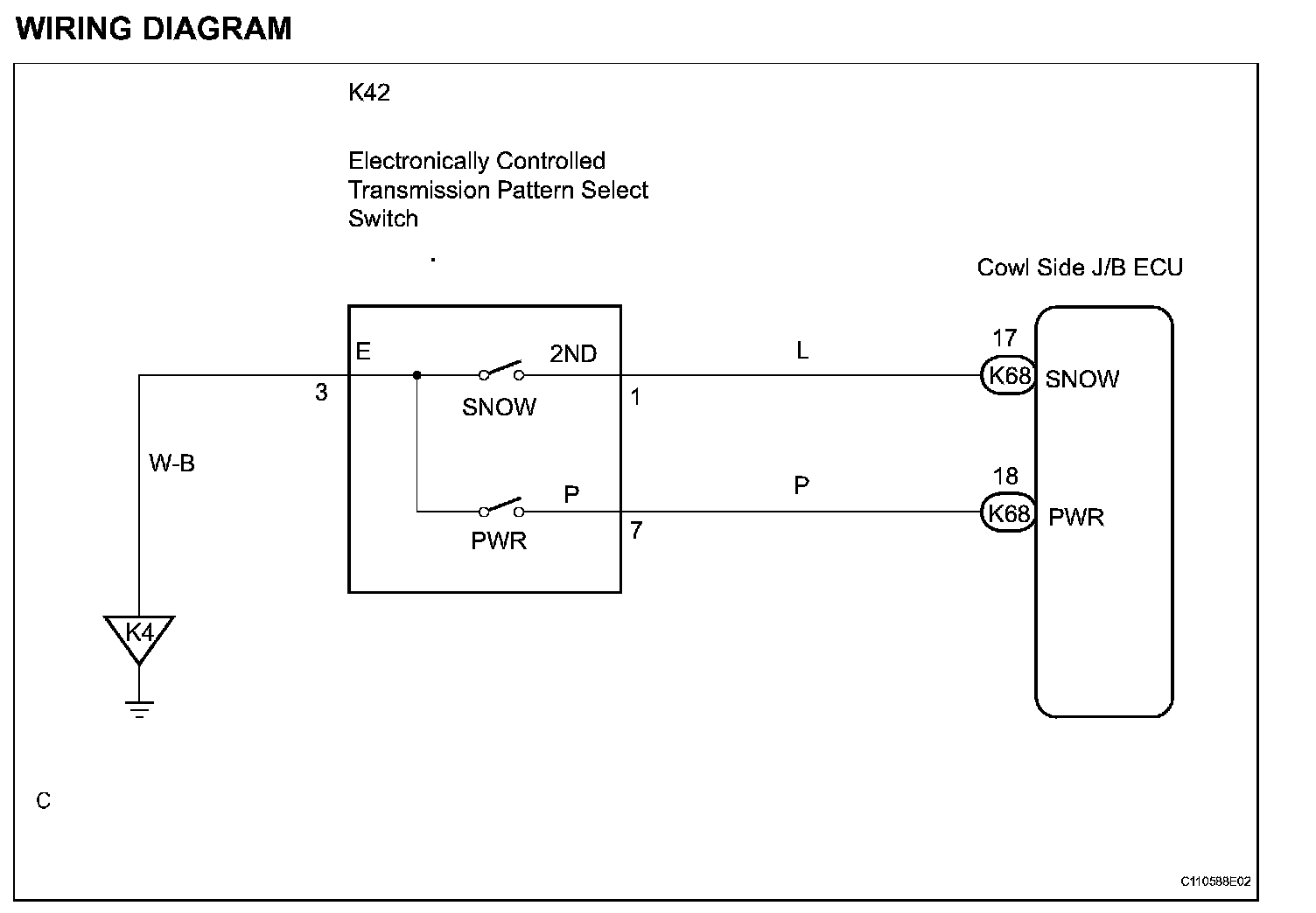 The cowl side J/B ECU receives pattern select switch information, and sends it through the multiplex communication system and CAN system to the ECM.