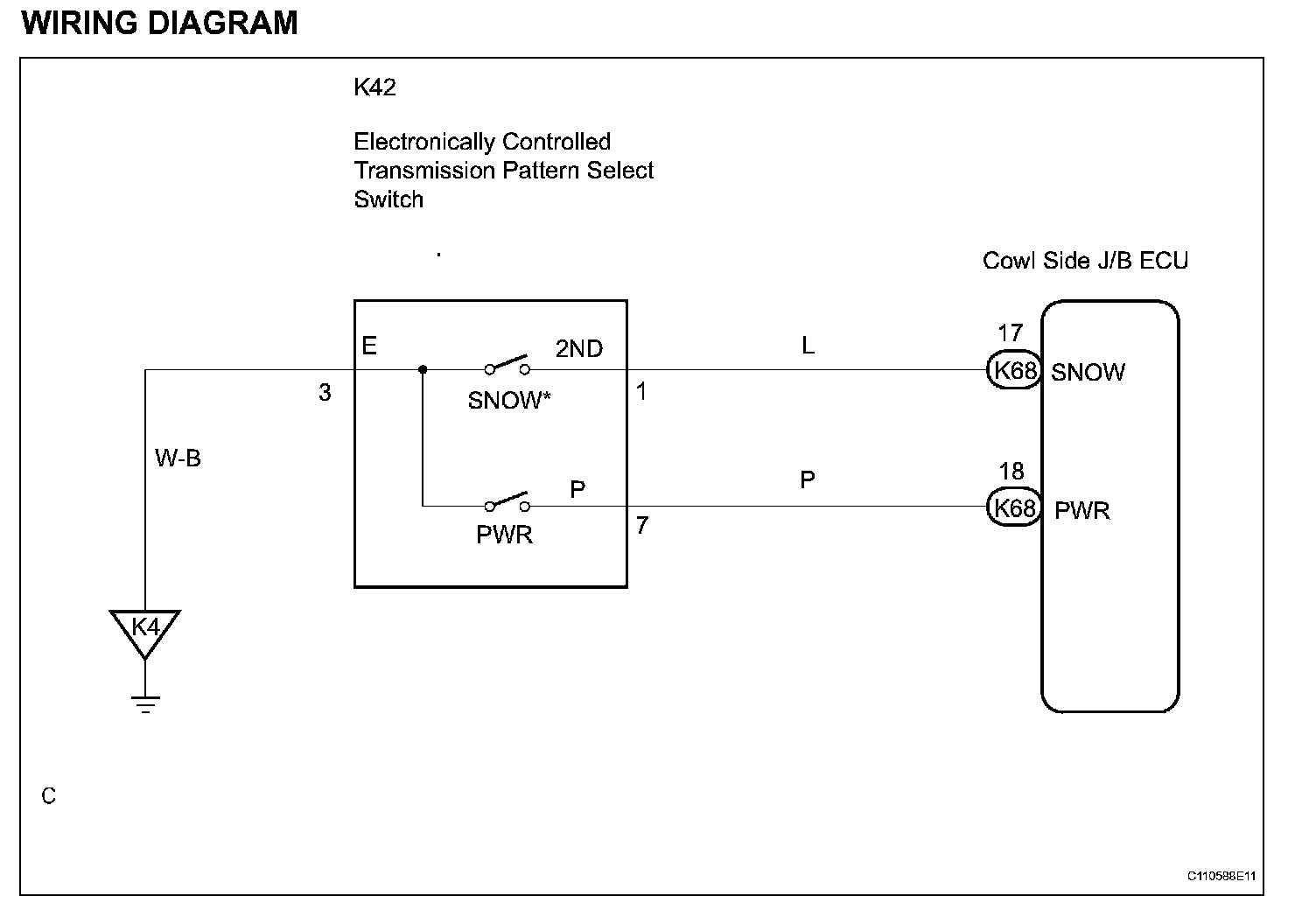 When the ECT SNOW switch is pushed, the switch contact is made and the ECT SNOW mode is selected.