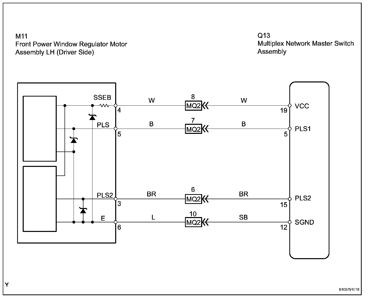 - The pulse sensors in the driver side power window regulator motor have a malfunction.