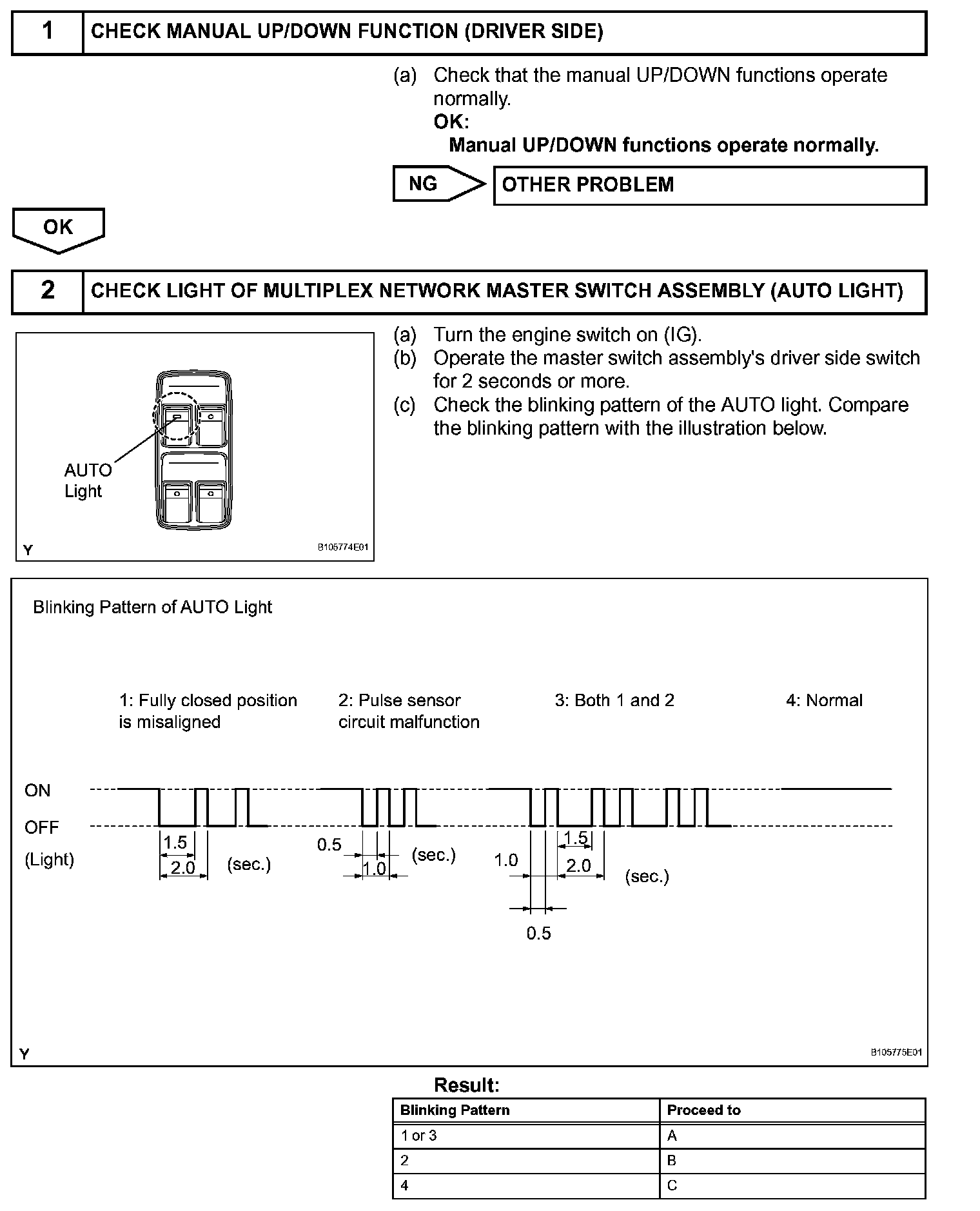 If the AUTO UP/DOWN function does not operate, the cause may be one or more of the following: