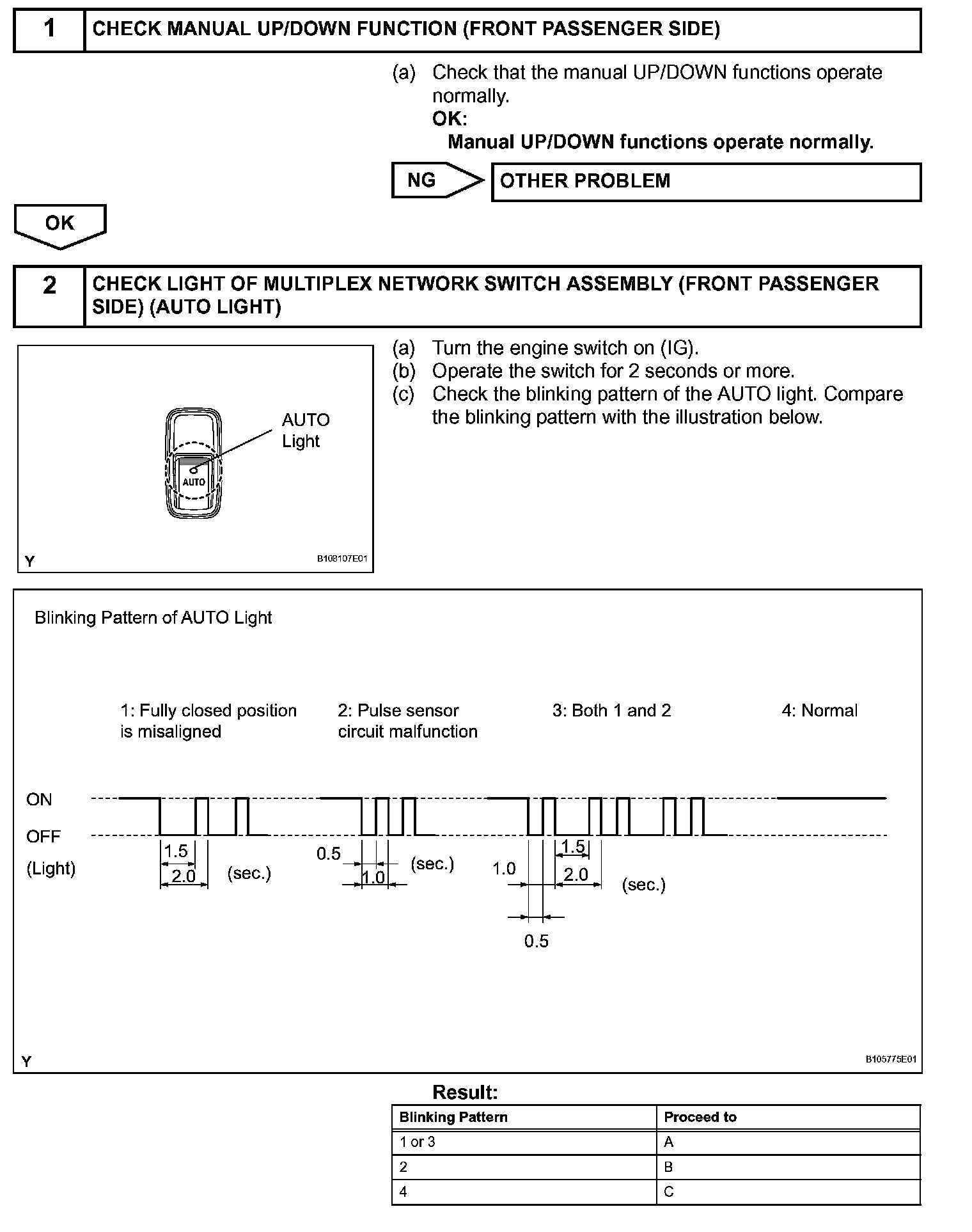 If the AUTO UP/DOWN function does not operate, the cause may be one or more of the following.