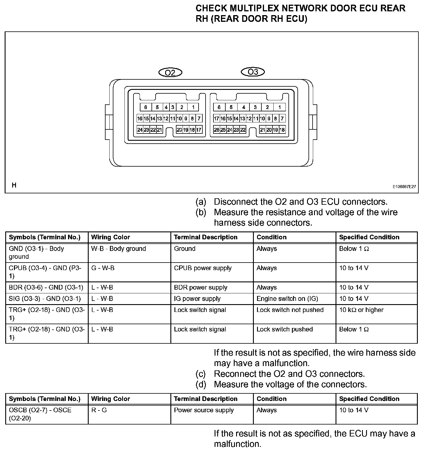 Terminals Of Control Module/Pinouts - Check Multiplex Network Door ECU Rear LH(Rear Door LH ECU):