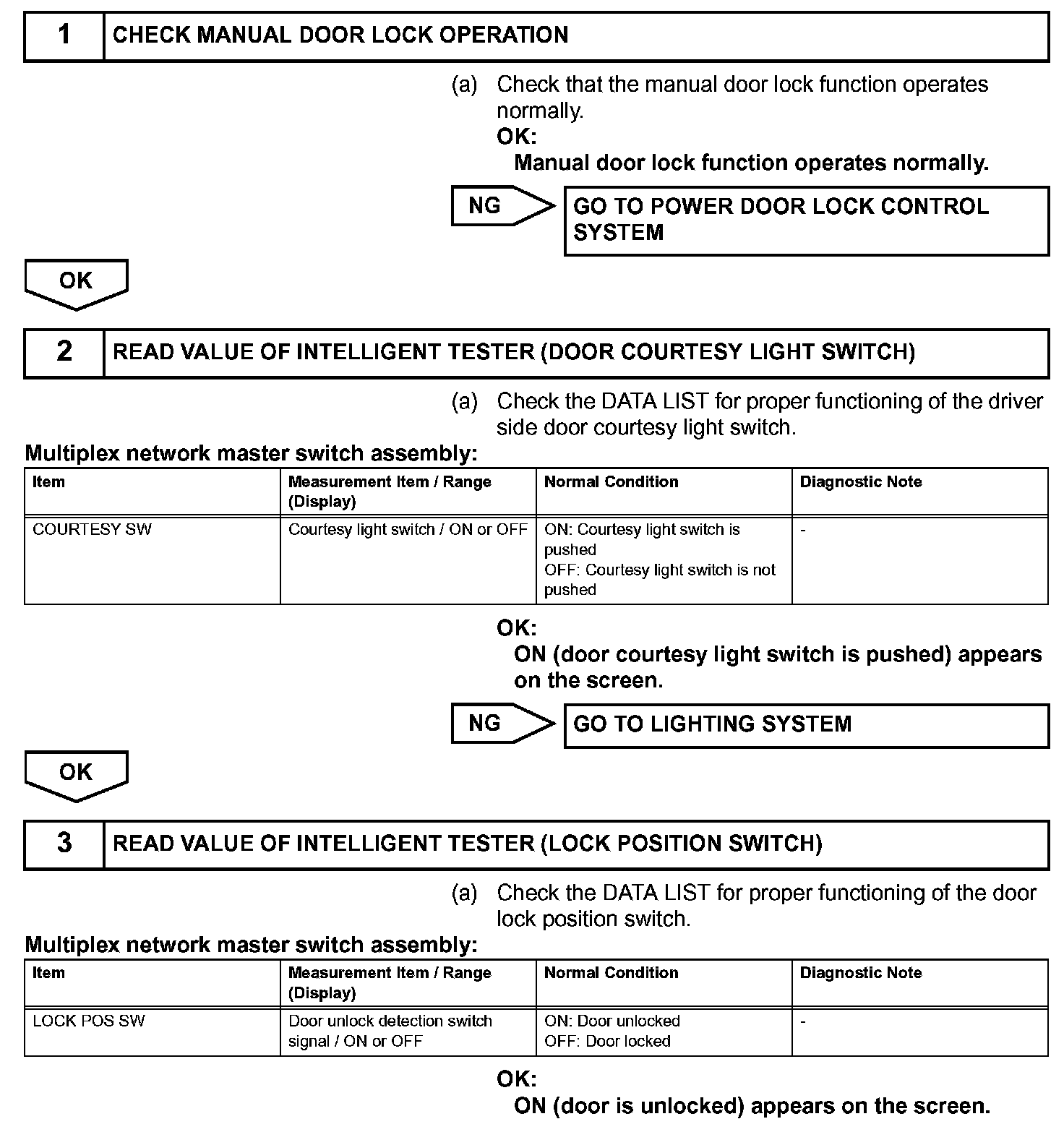 Driver Side Door Entry Lock Function does not OperateDESCRIPTION