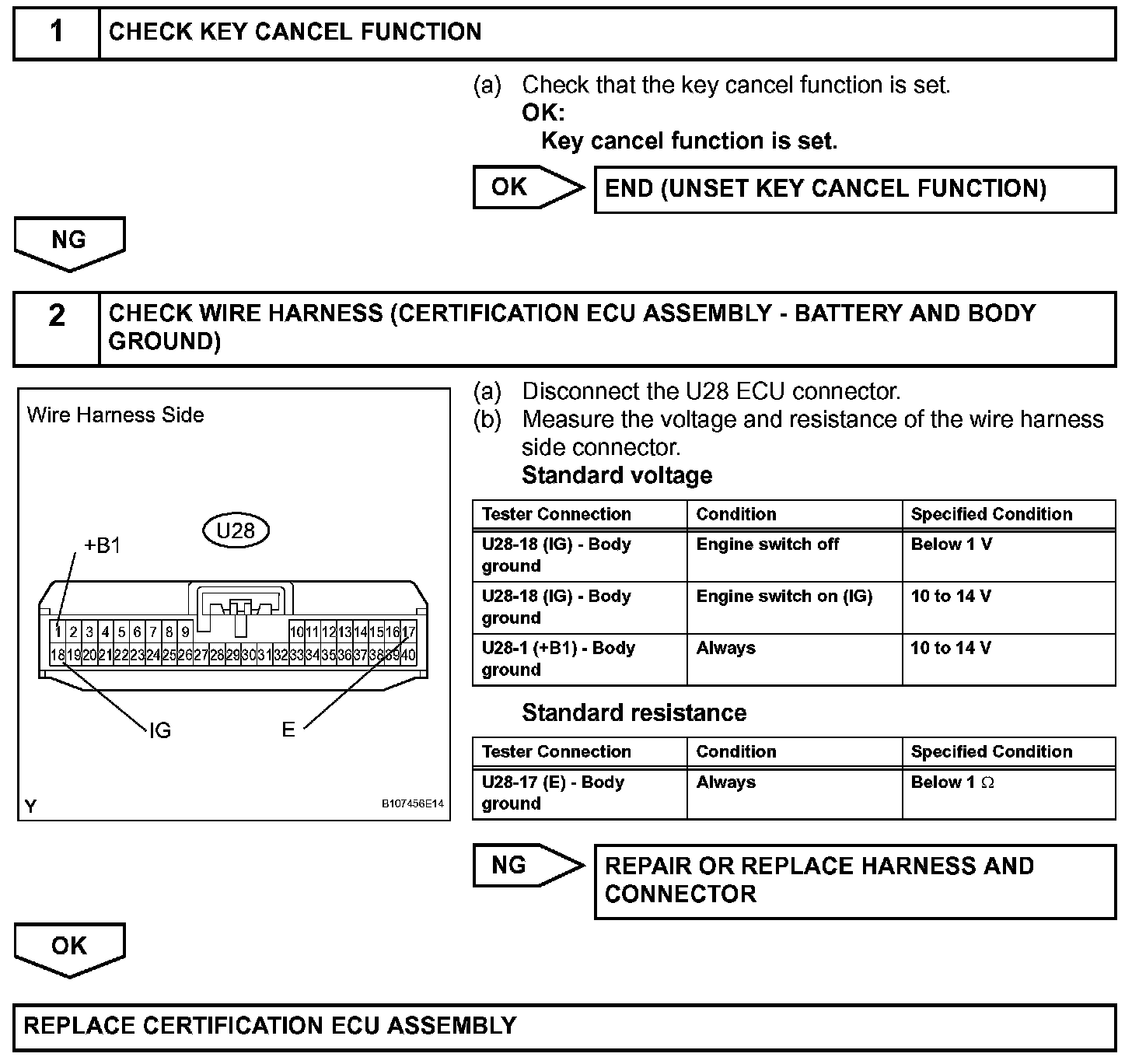 When the entry functions do not operate at all, it is possible that the certification ECU is malfunctioning or that the wire harness leading to the certification ECU is short-circuited.