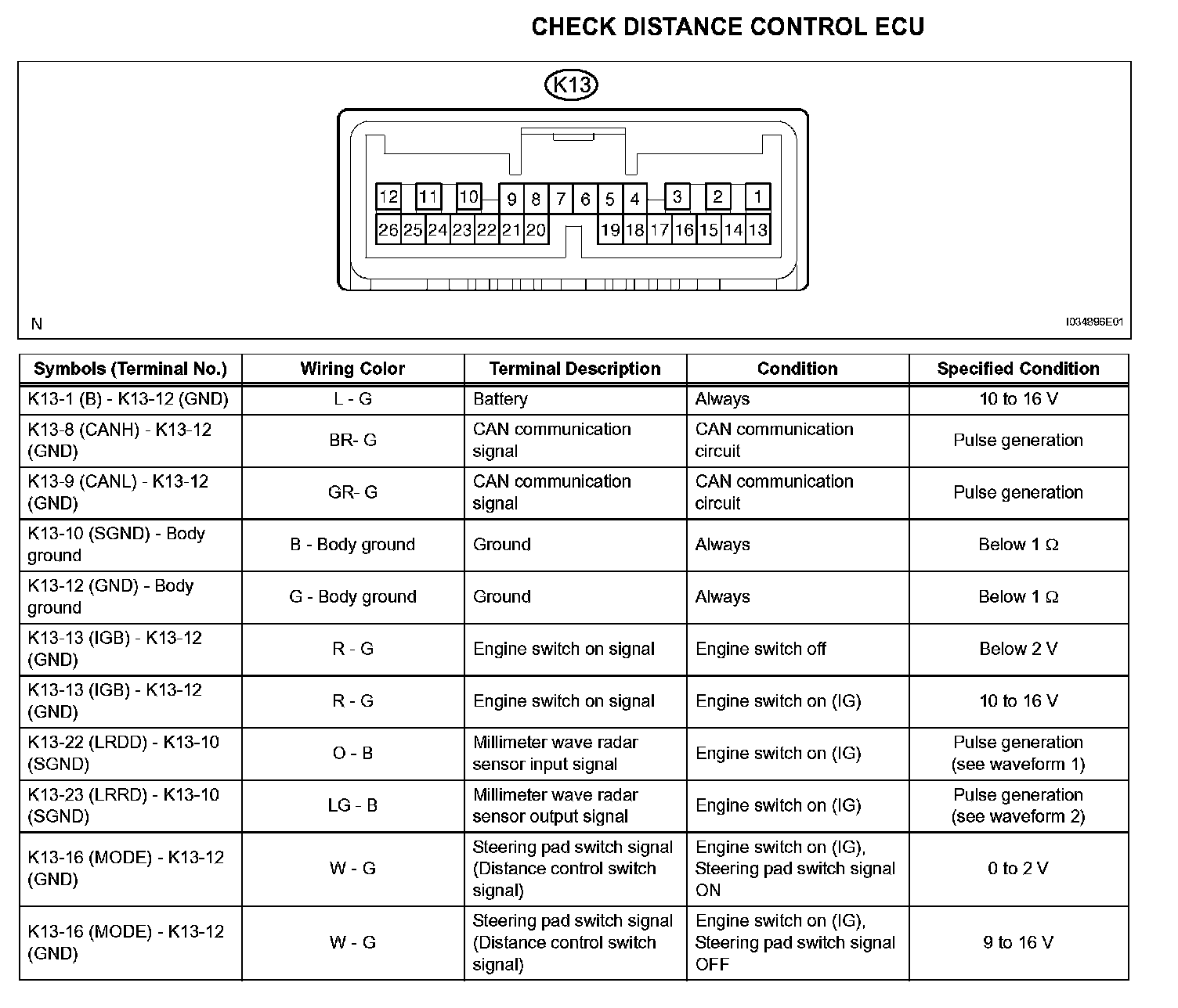 Terminals Of Control Module/Pinouts - Check Distance Control ECU:
