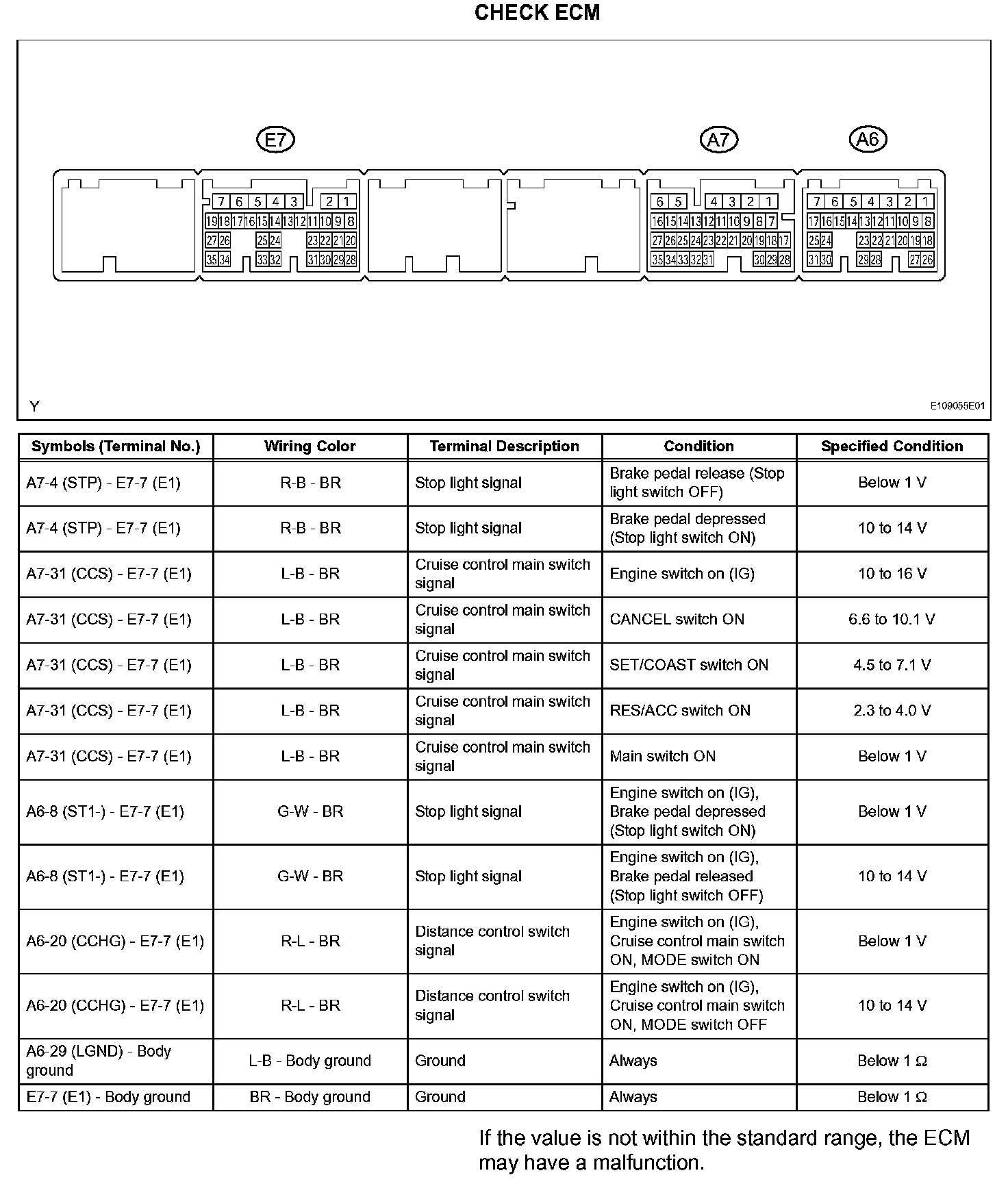 Terminals Of Control Module/Pinouts - Check ECM: