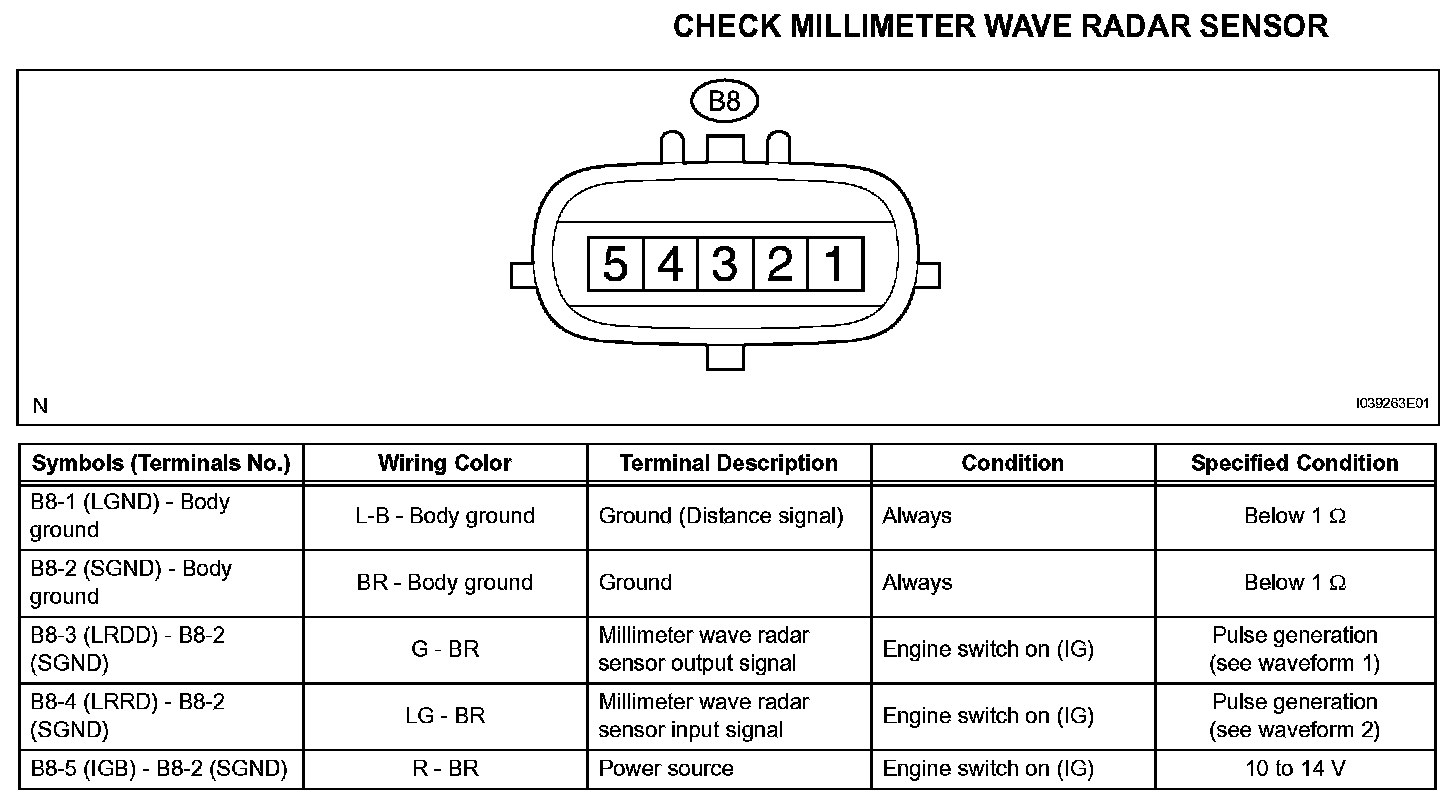 Terminals Of Control Module/Pinouts - Check Millimeter Wave Radar Sensor: