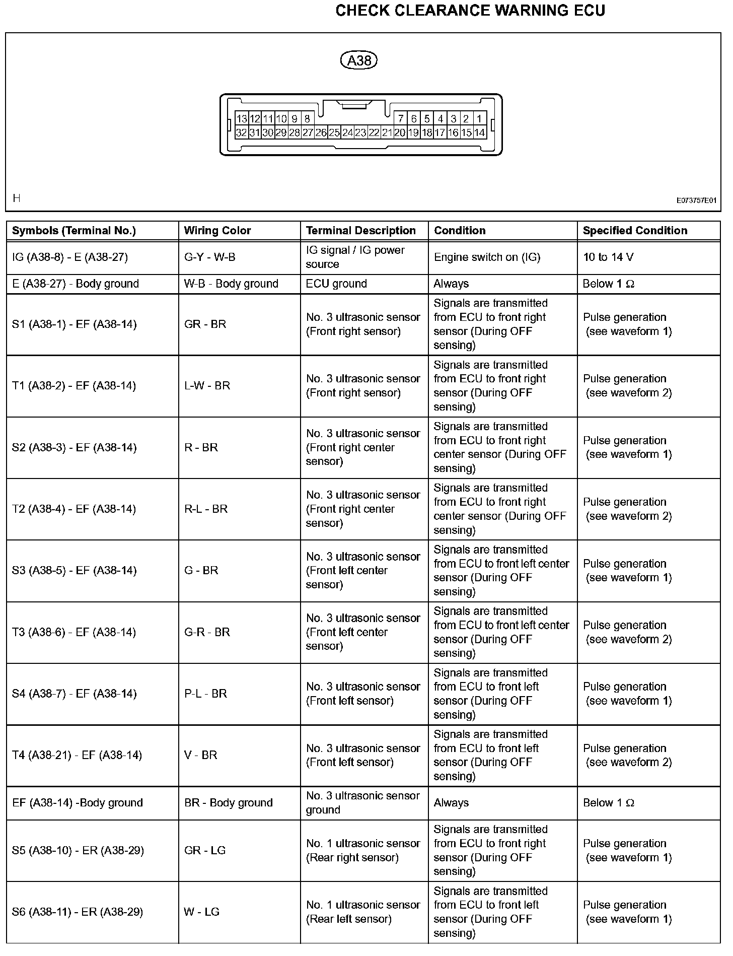 Terminals Of Control Module/Pinouts - Check Clearance Warning ECU (Part 1):
