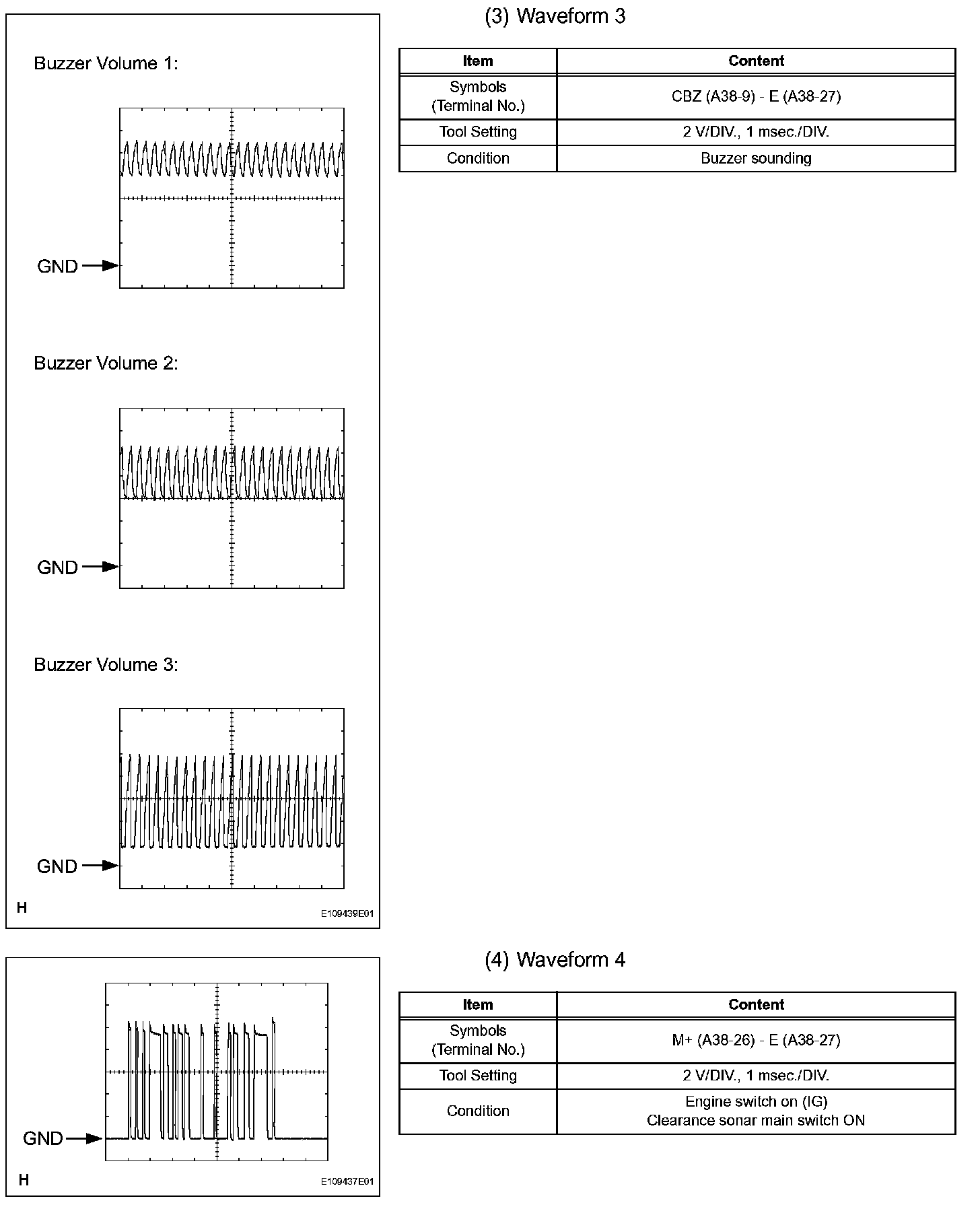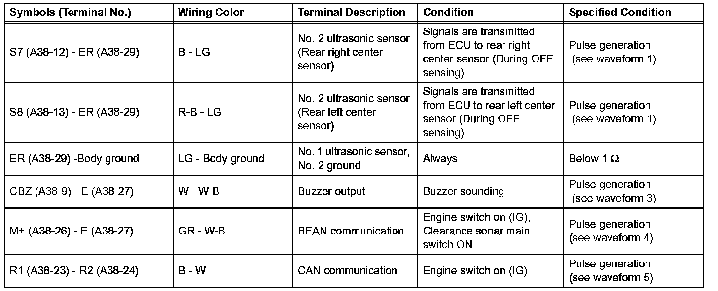 Check Clearance Warning ECU - Oscilloscope Waveform (Part 4):