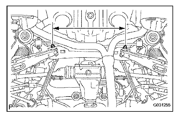 (1) Measure the distance between the centers of the installation bolts of the rear suspension arm assembly No.2 LH and RH.