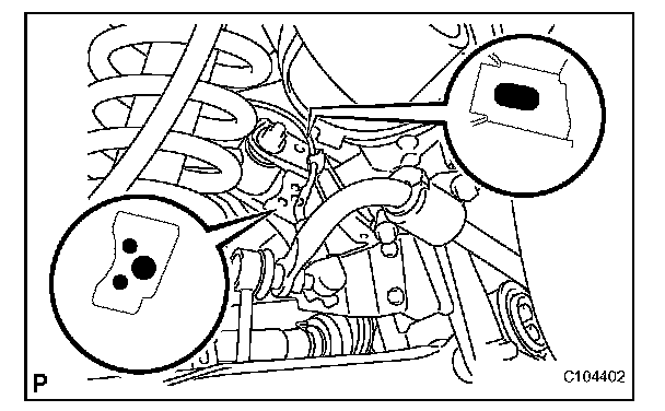 (2) Visually inspect the press holes on the installation area of the upper control arm assembly rear No.2.