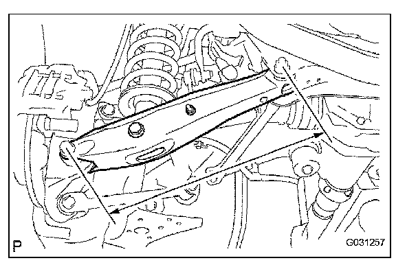(1) Measure the distance between the centers of the 2 installation bolts of the rear suspension arm assembly No.2.