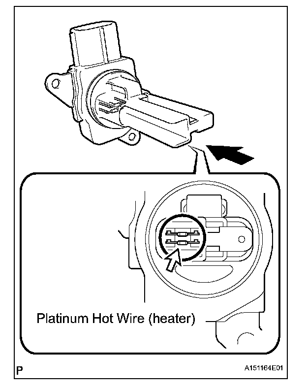a. Perform a visual check for any foreign matter on the platinum hot wire (heater) of the mass air flow meter shown in the illustration.