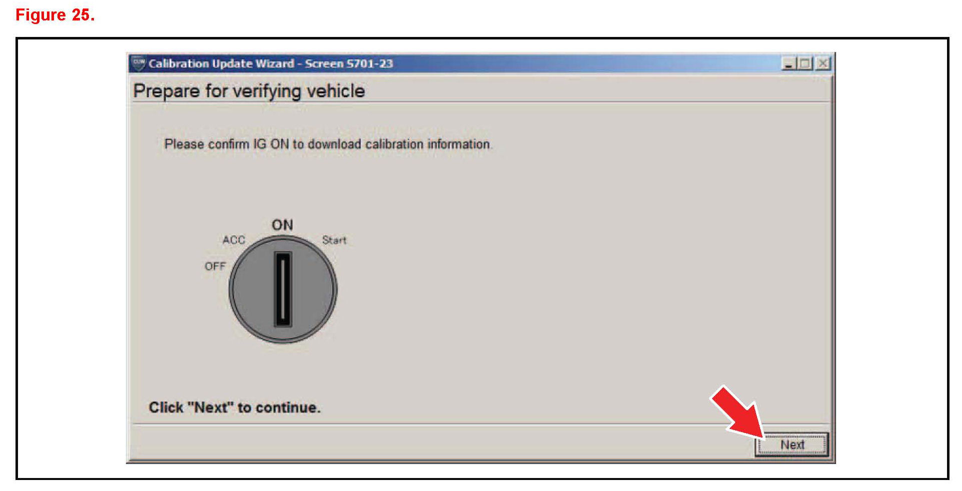 N. Turn ignition to the ON position. Then click Next.