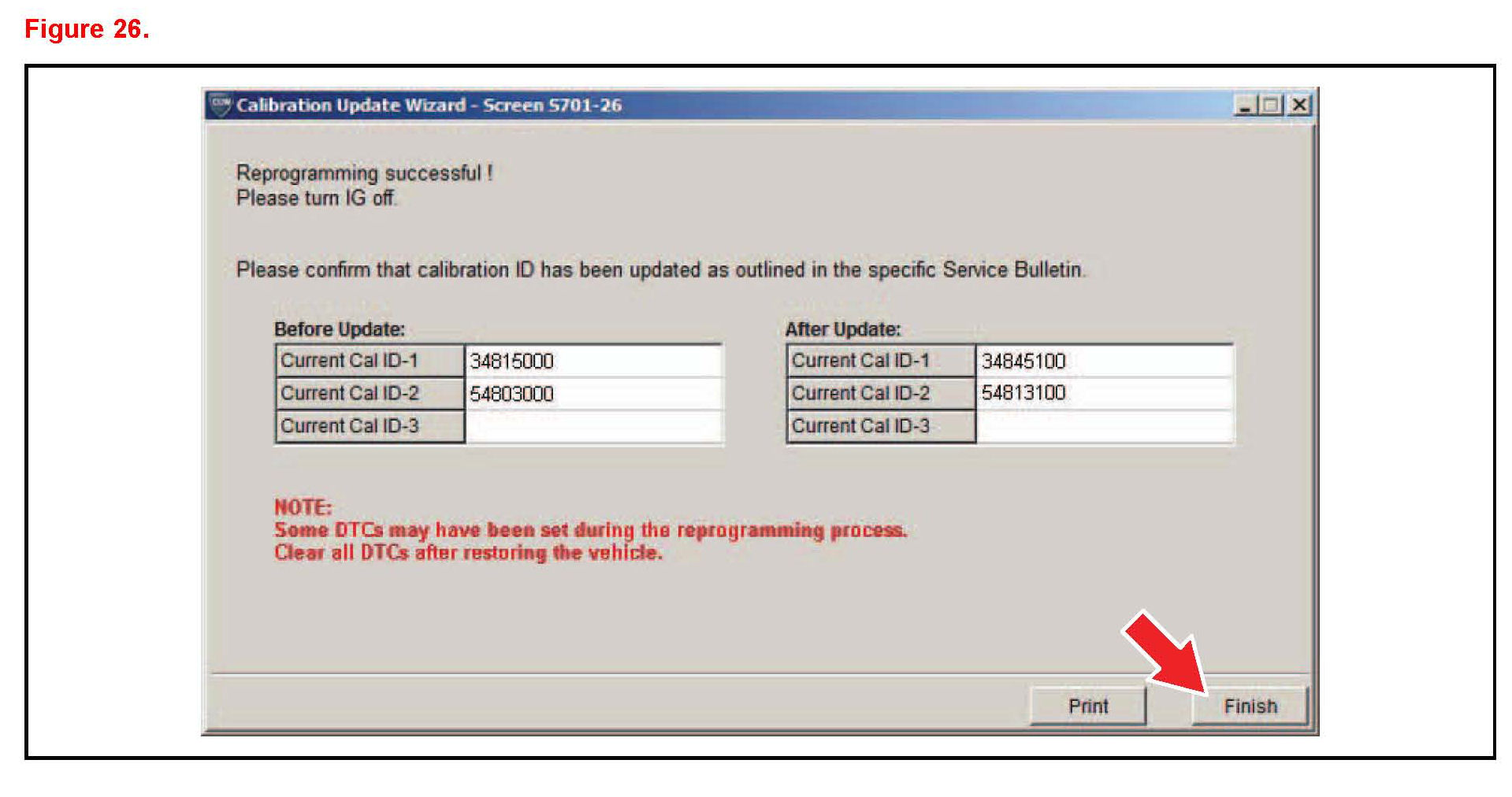 0. Confirm all calibrations were updated as specified in the service bulletin. Then click Finish.