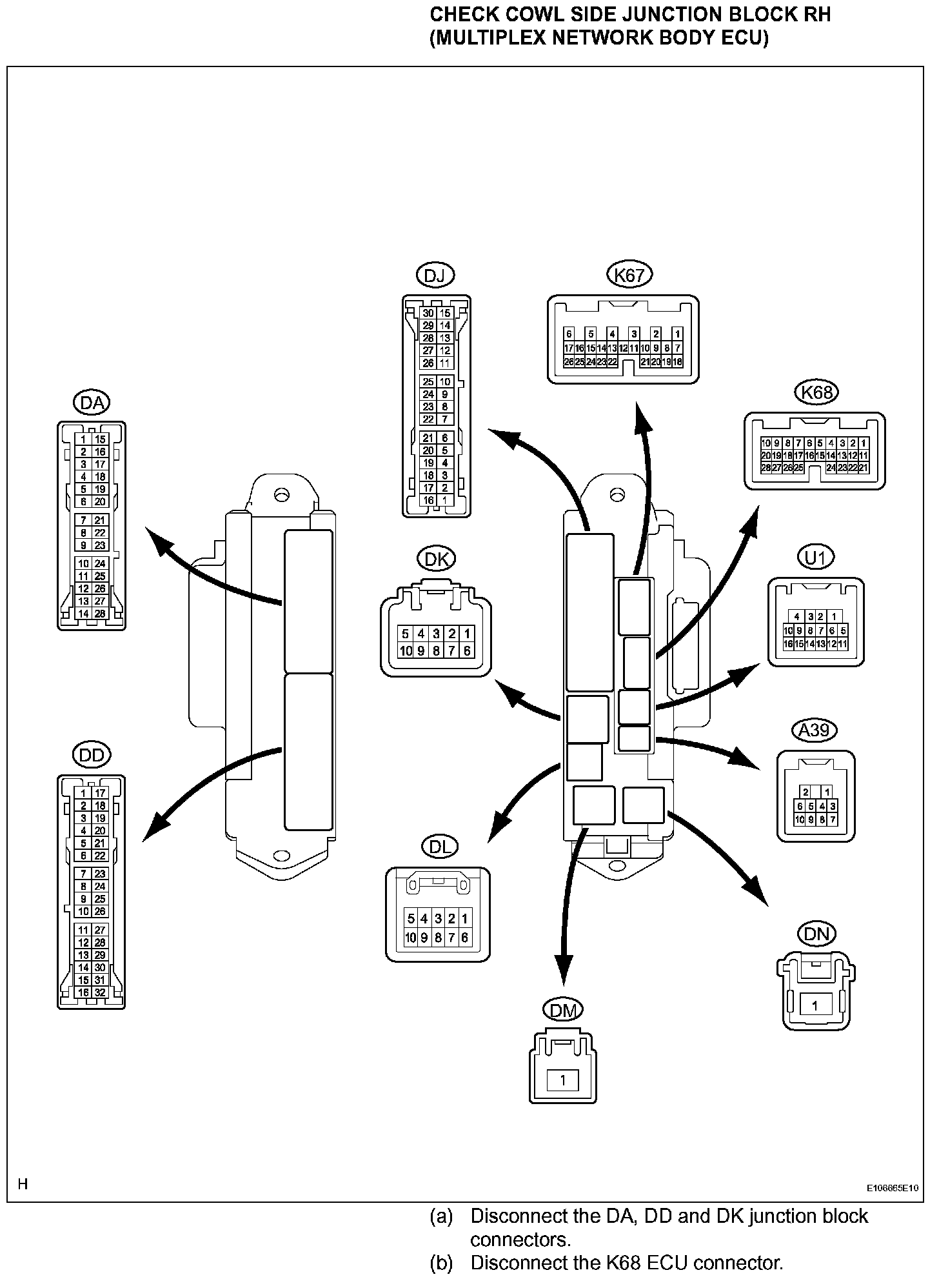 Terminals Of Control Module/Pinouts - Check Cowl Side Junction Block RH (Multiplex Network Body ECU) (Part 1):
