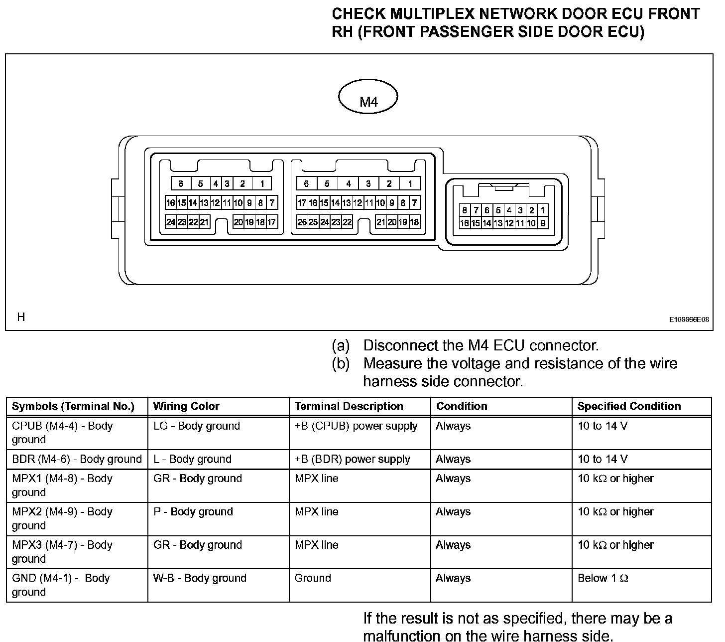 Terminals Of Control Module/Pinouts - Check Multiplex Network Door ECU Front RH (Front Passenger Side Door ECU):