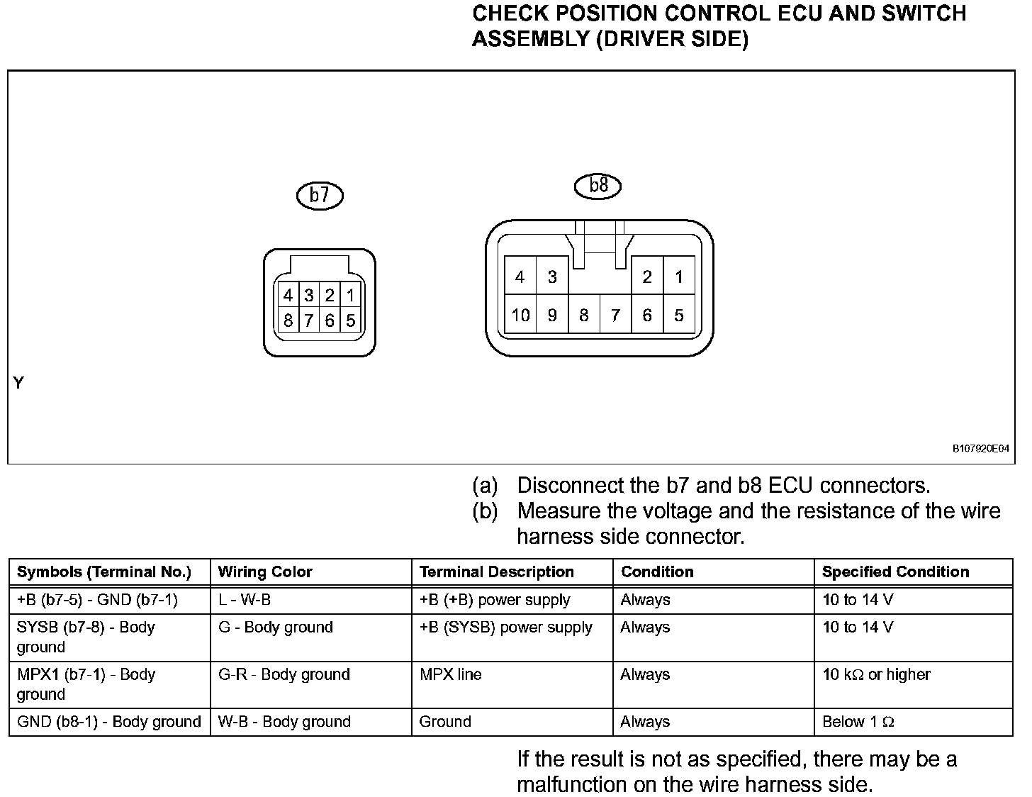 Terminals Of Control Module/Pinouts - Check Position Control ECU And Switch Assembly (Driver Side):