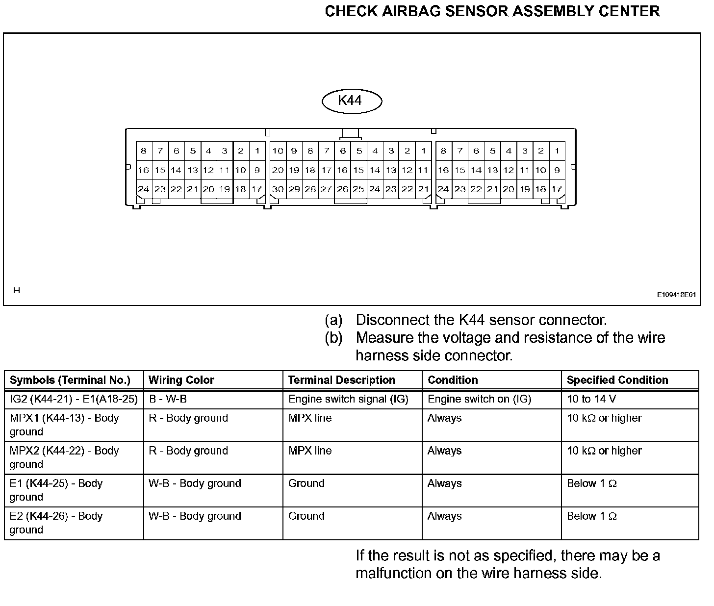Terminals Of Control Module/Pinouts - Check Airbag Sensor Assembly Center: