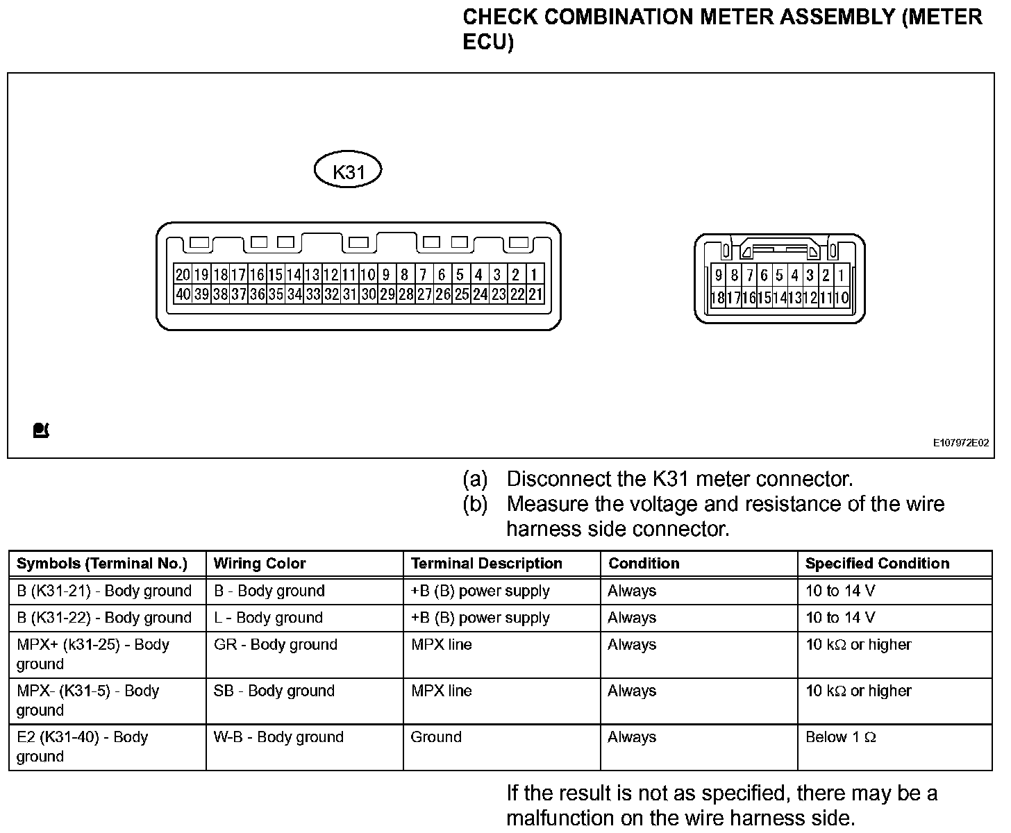 Terminals Of Control Module/Pinouts - Check Combination Meter Assembly (Meter ECU):