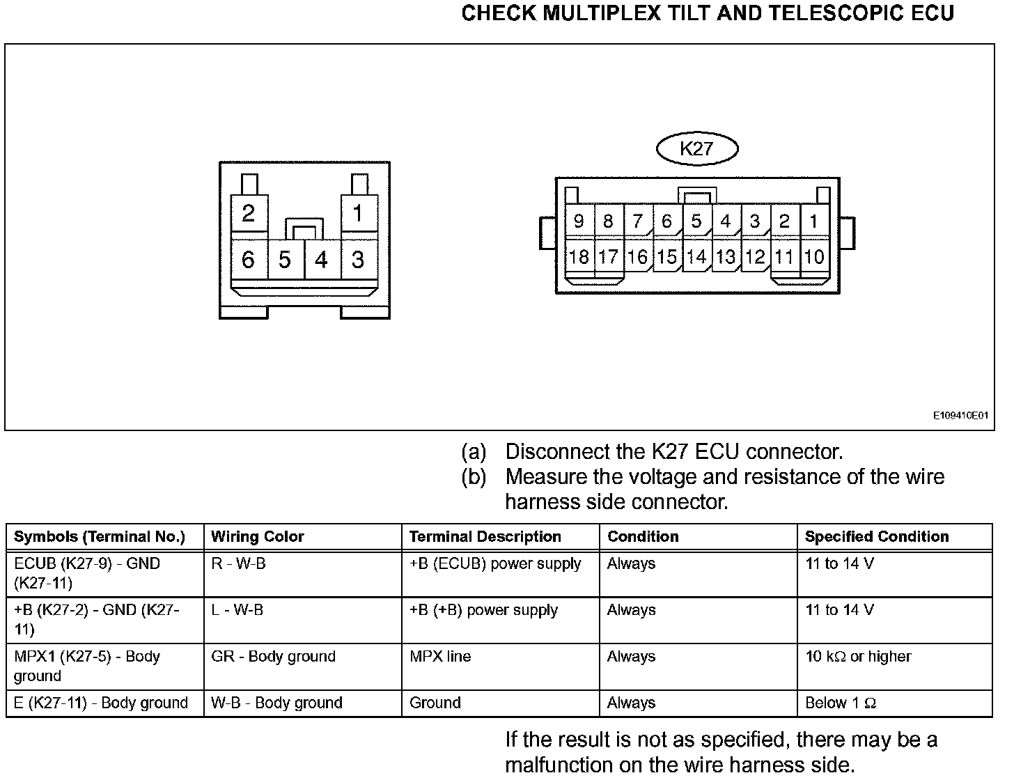 Terminals Of Control Module/Pinouts - Check Multiplex Tilt And Telescopic ECU: