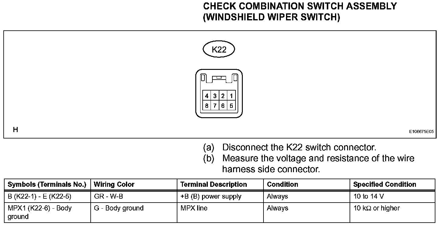 Terminals Of Control Module/Pinouts - Check Combination Switch Assembly (Windshield Wiper Switch) (Part 2):