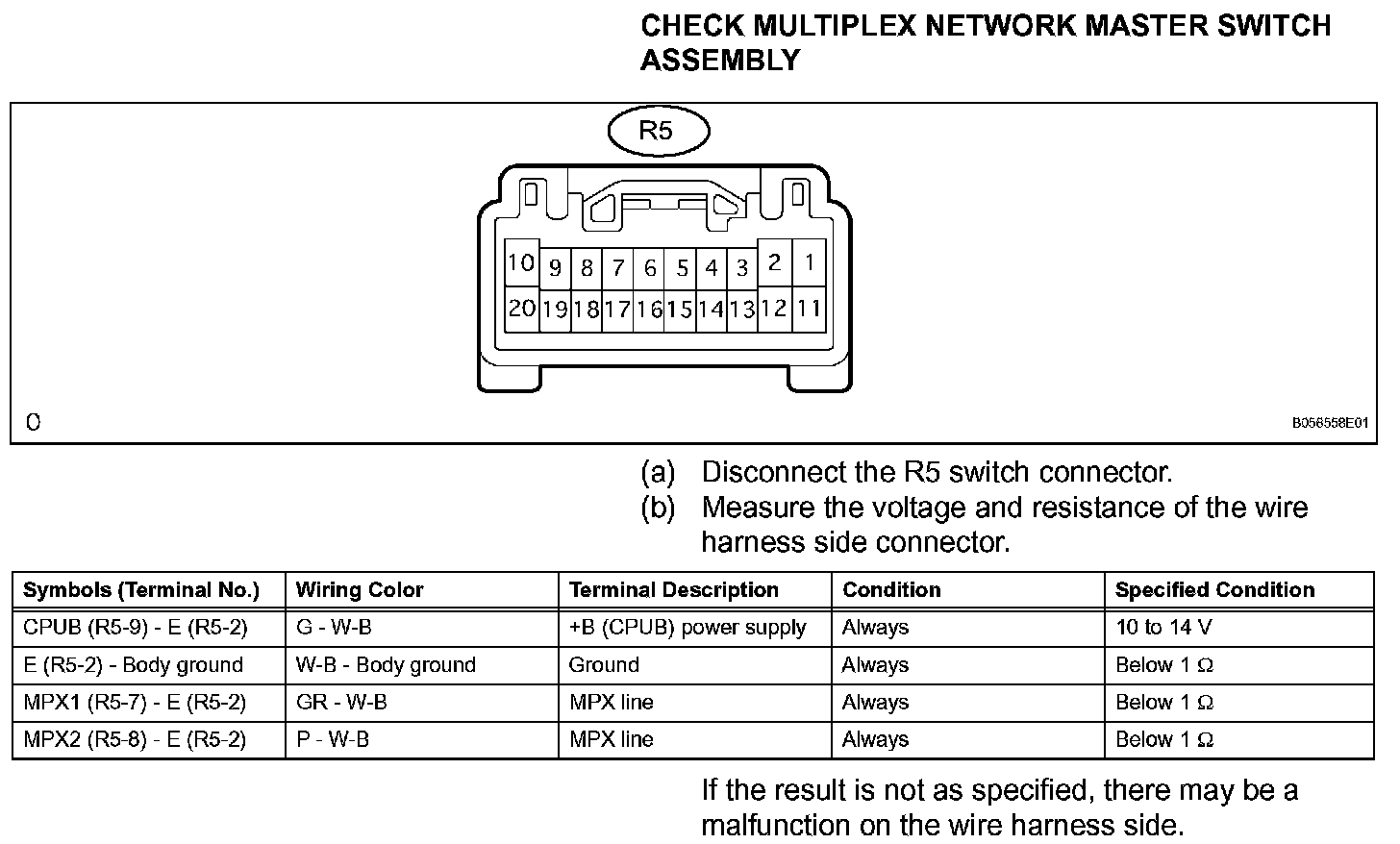 Terminals Of Control Module/Pinouts - Check Multiplex Network Master Switch Assembly: