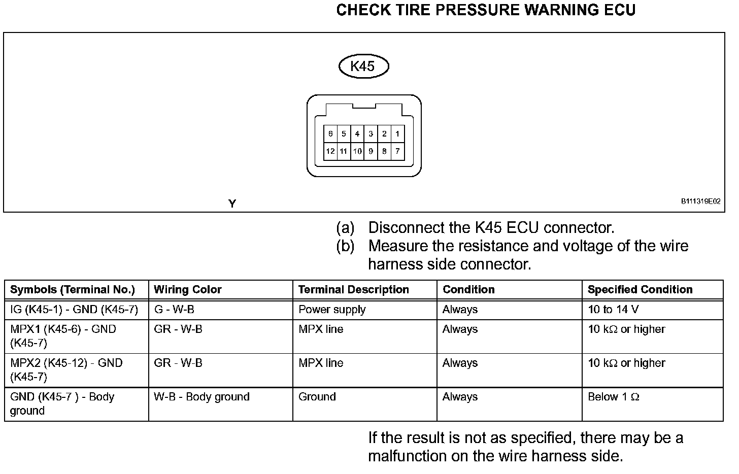 Terminals Of Control Module/Pinouts - Check Tire Pressure Warning ECU: