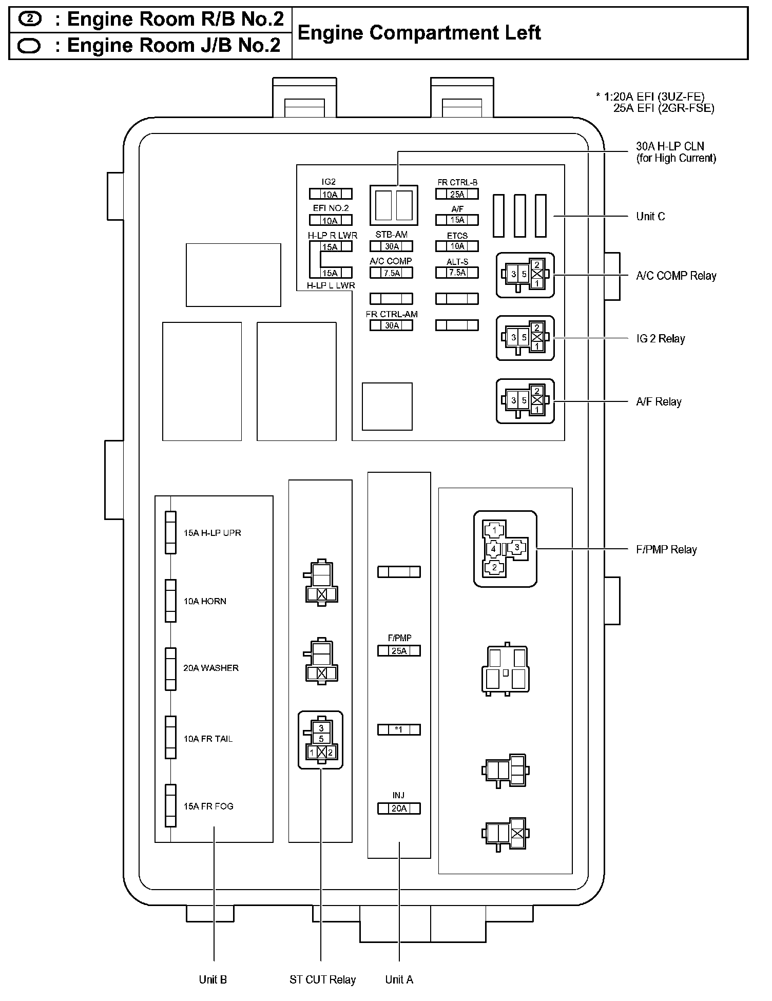 Engine Room R/B No.2, J/B No.2 - Engine Compartment Left: