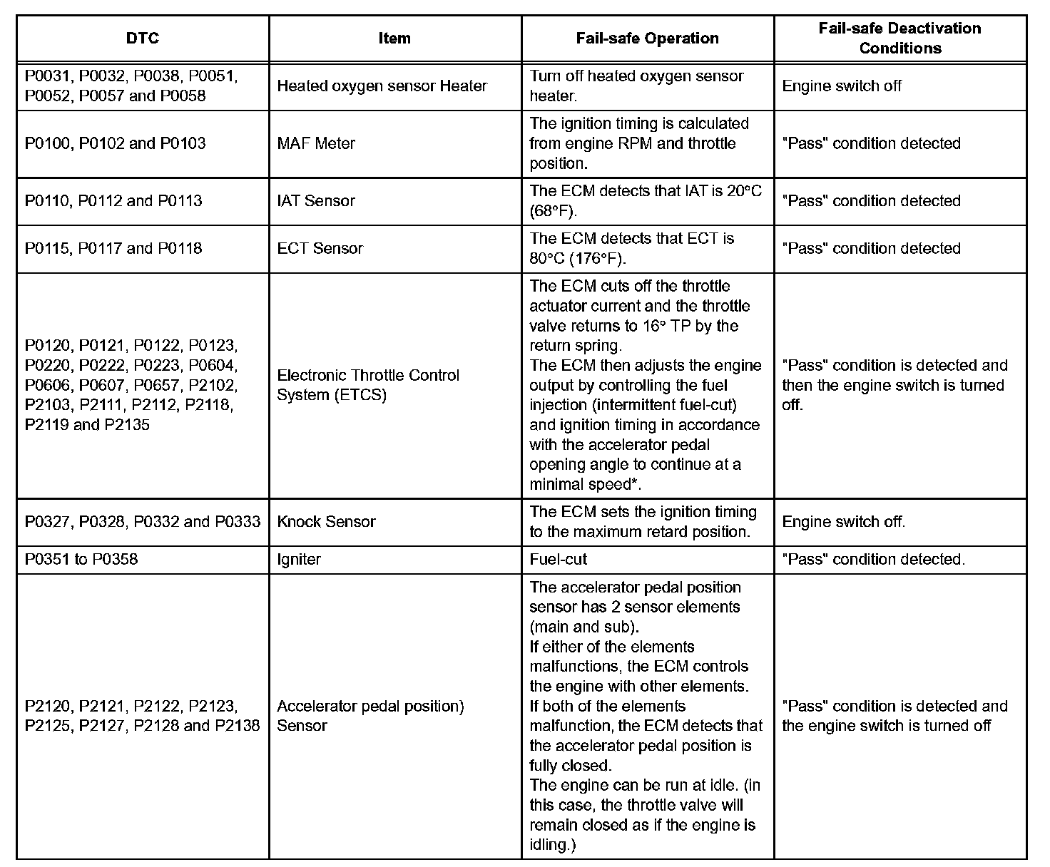 If any of the given codes are recorded, the ECM enters the fail-safe mode.