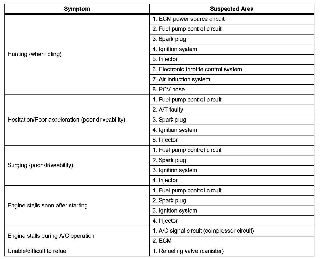PROBLEM SYMPTOMS TABLEProblem Symptom Table-SFI System (Part 1):