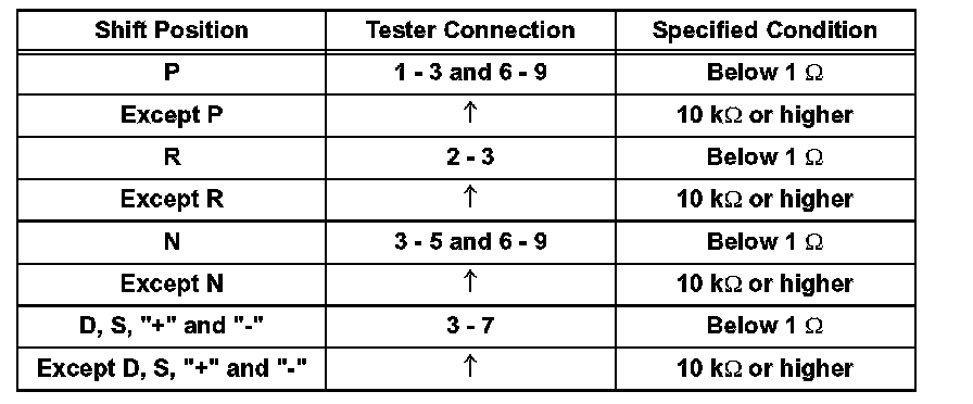 a. Measure resistance according to the value(s) in the table when the shift lever is moved to each position.