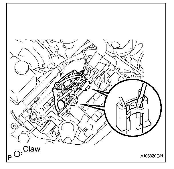 NOTE: Make sure that the wire harness does not get caught between other parts.