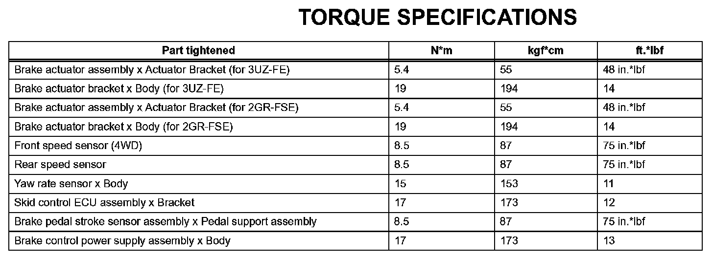 Brake Control - Torque Specifications: