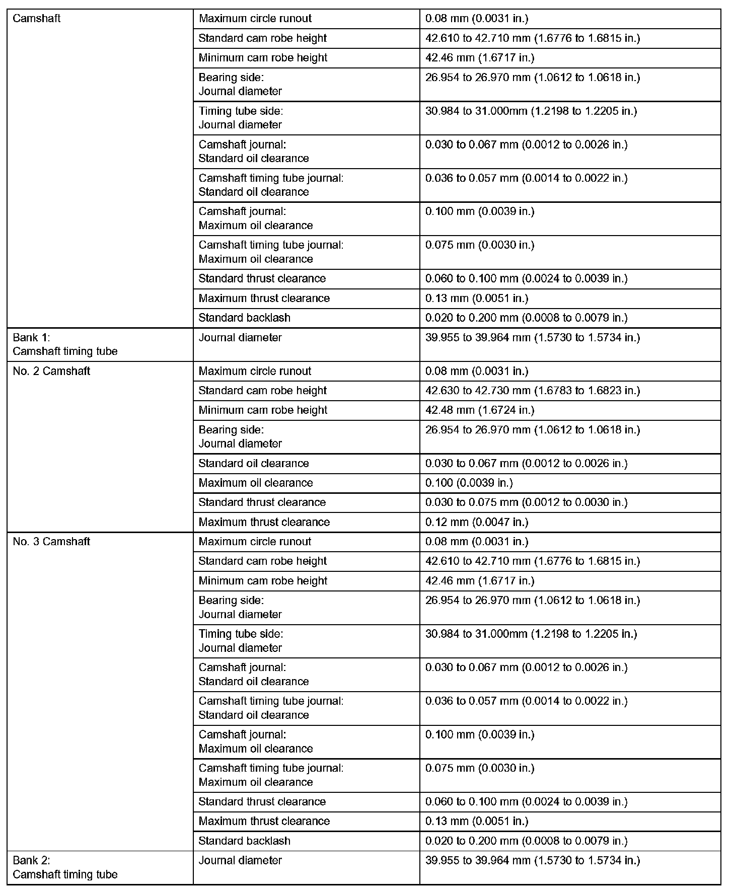 Engine Mechanical - Service Data (Part 2):