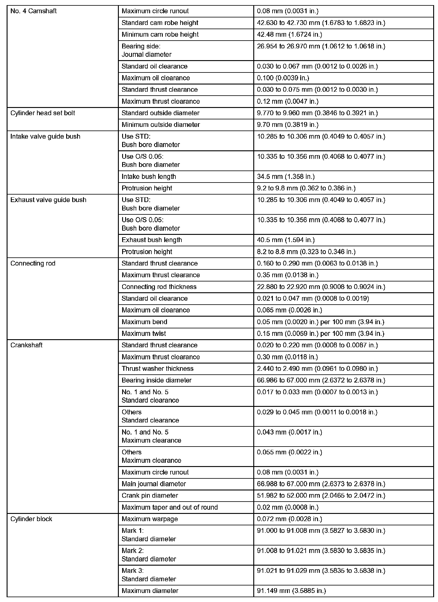 Engine Mechanical - Service Data (Part 4):