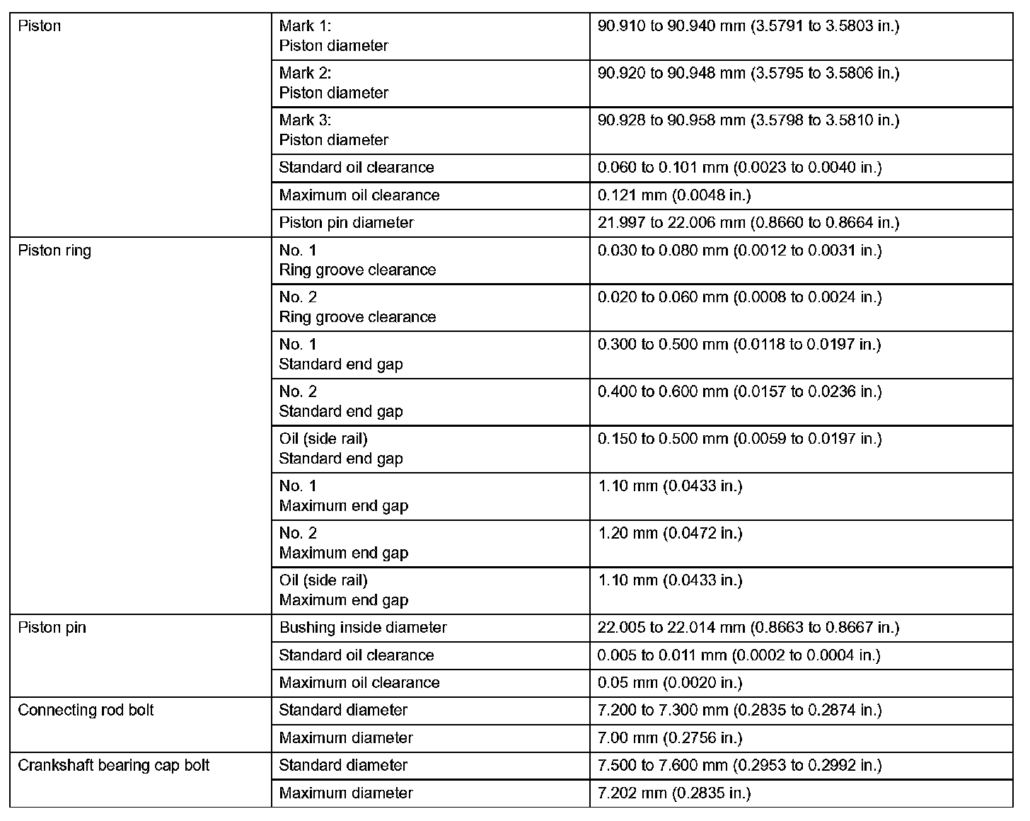 Engine Mechanical - Service Data (Part 1):