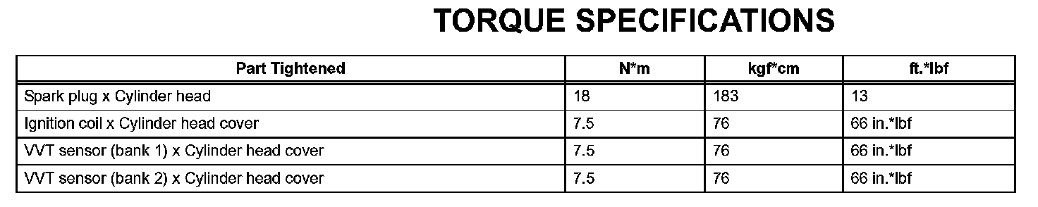 Ignition - Torque Specifications: