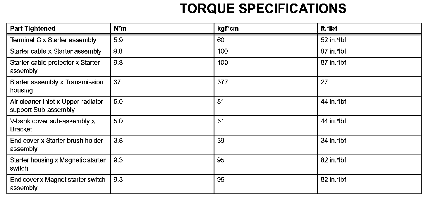 Starting - Torque Specifications: