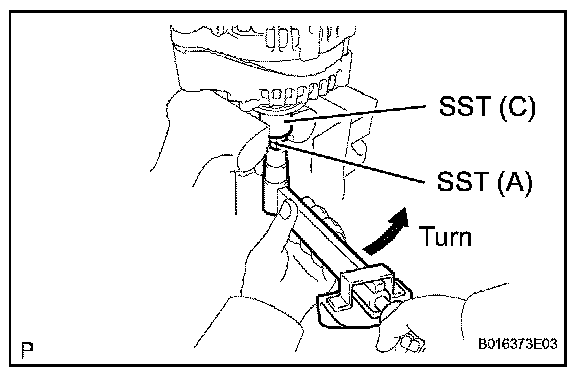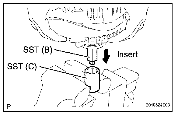 e. Insert SST (B) into SST (C), and attach the pulley nut to SST (C).