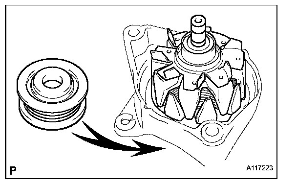 a. Install the pulley to the rotor shaft with the pulley nut by hand.