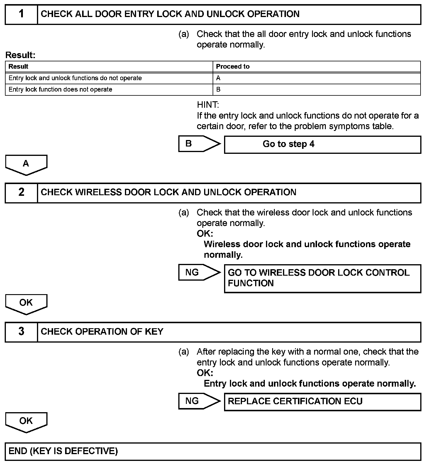 All Door Entry Lock and Unlock Functions do not OperateDESCRIPTION